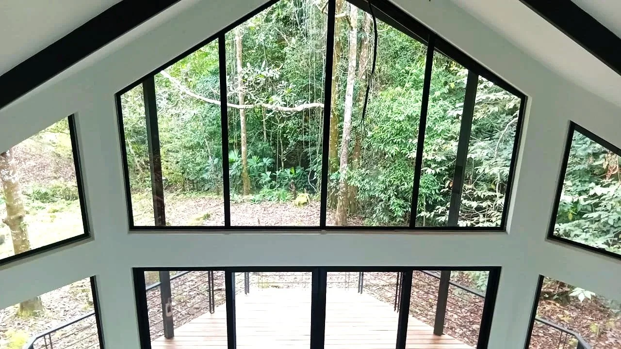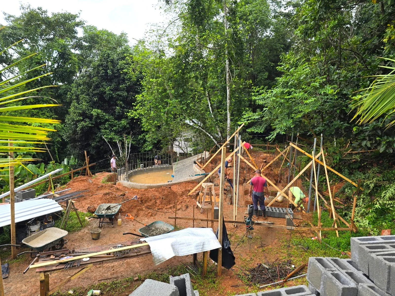 In August, we began crafting our first two jungle lofts — modern, airy retreats elevated lightly above the forest floor. Wrapped in panoramic glass and surrounded by lush greenery, they offer a front-row seat to the natural world, where coatis and monkeys often wander past. A harmonious blend of contemporary comfort and untouched jungle beauty.